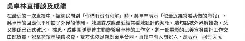 成龙一开始也没掺和。他和吴卓林之间,隔的不只是血缘,还有二十多年没见的陌生。但她那份倔劲儿,倒是真像极了他年轻时候的脾气——不靠谁,不吃嗟来之食,再难也不开口要钱。连他都开始琢磨,这孩子是不是自己太狠心了?